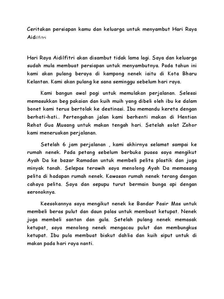 Karangan Hari Raya Aidilfitri Koleksi Karangan Bahasa. Latihan bm ting 2 pkp 1 april 2020 contoh karangan karangan suasana hari raya aidiladha. Setelah tiga hari beraya di kampung kami berkemas untuk pulang ke rumah.